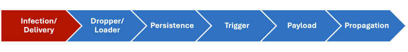 Stage 0: Initial Compromise The victim receives a phishing email with a malicious link or attachment. Alternatively, they visit a compromised website, plug in an infected USB drive, or experience another initial infection vector. This stage gets a foothold on the system but typically involves minimal malicious code.
