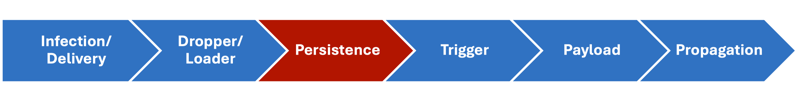 Once malware has successfully executed on a system, it needs to ensure it survives reboots and isn't easily removed. Persistence mechanisms achieve this by inserting the malware into locations where it will automatically execute when the system starts or when certain events occur.