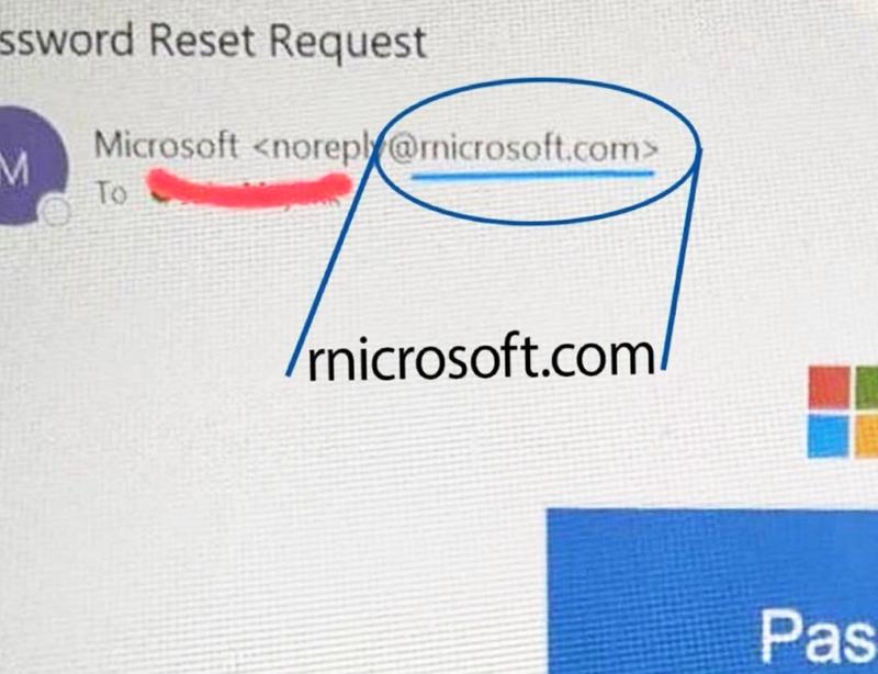 Typosquatting: paypa1.com (number 1 instead of letter l), micros0ft.com (zero instead of o), gooogle.com (extra o)